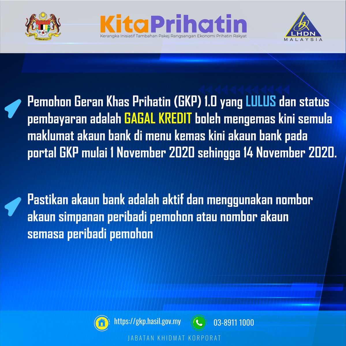 Borang permohonan gkp geran khas prihatin online. Isikan maklumat akaun bank yang tepat, klik simpan dan anda telah selesai kemaskini. Tarikh pembayaran geran khas prihatin adalah secara berperingkat mulai 25 november 2020 dan pembayaran akan dikreditkan ke akaun bank pemohon yang layak. Bantuan khas pemandu bas sekolah.