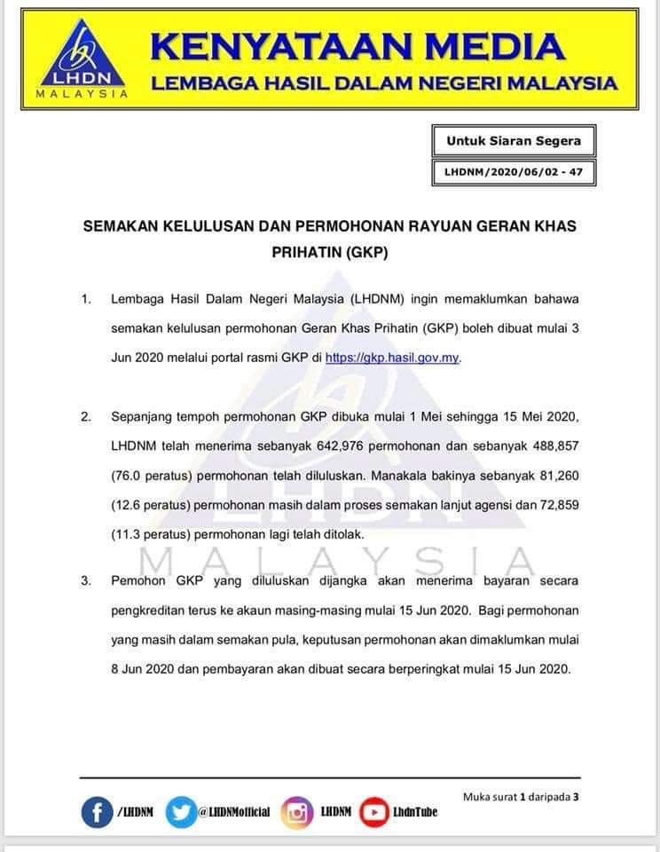 Semakan kelulusan permohonan geran khas prihatin (gkp), tarikh dan cara pembayaran gkp dan permohonan rayuan gkp secara online. Saya pernah menrima gkp sebelum ni. Kerajaan bersetuju untuk membuka semula permohonan geran khas prihatin (gkp) kepada peniaga mikro bagi menurut muhyiddin, permohonan gkp yang akan dibuka semula mulai 1 oktober hingga 31 oktober 2020 ini bertujuan bagi memastikan lebih ramai peniaga mikro yang layak tetapi. Masih aktif menjalankan perniagaan semasa permohonan dibuat.